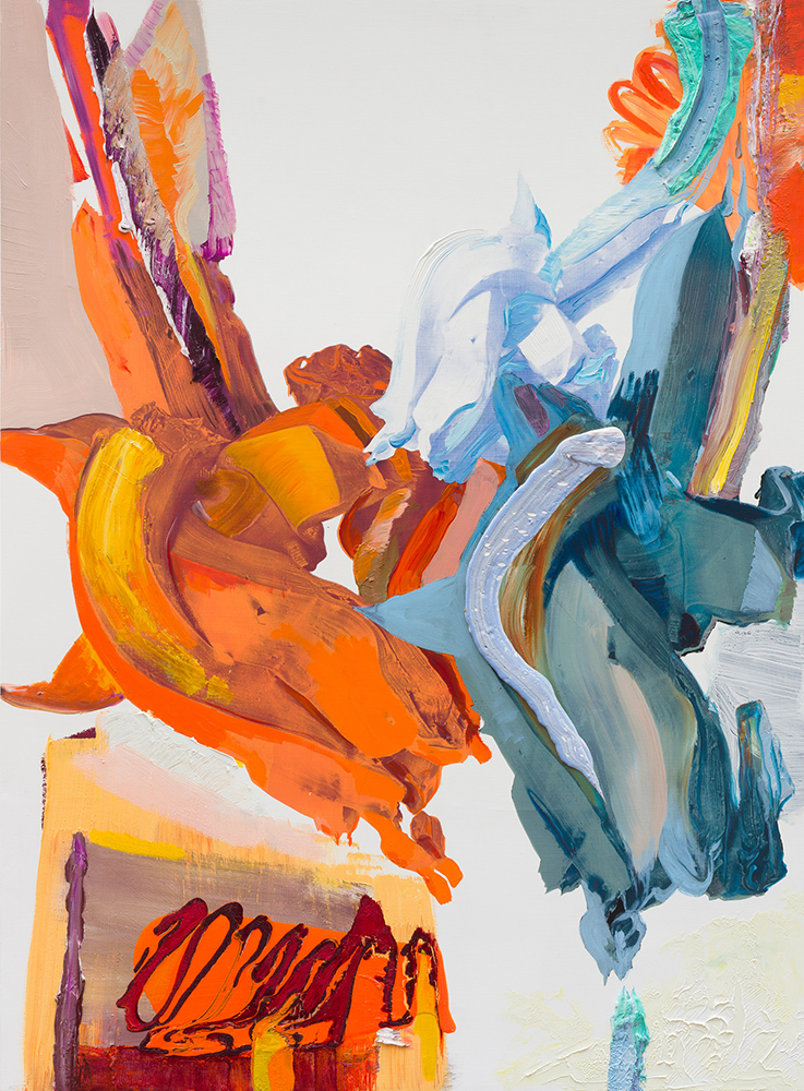 Pia Fries, bolt I | 2025 |oil paint and screen print on wood | 105 x 77 cm| boa-basedonart